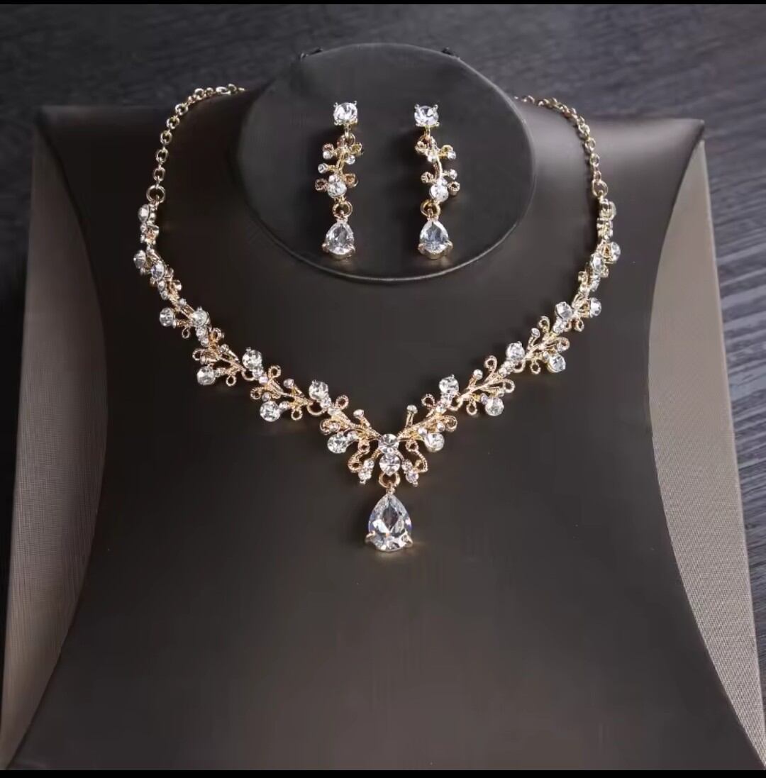 高級クリスタルAB カラーチョーカーネックレスイヤリングセットラインストーンブライダルジュエリーセット花嫁のウェディングパーティー衣装ビジューファム