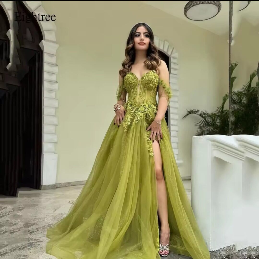 《オーダーメイド》ハート型のネックライン、チュール、サイドスリットプリンセス、カスタムメイドのグリーングラスのペチコート上品