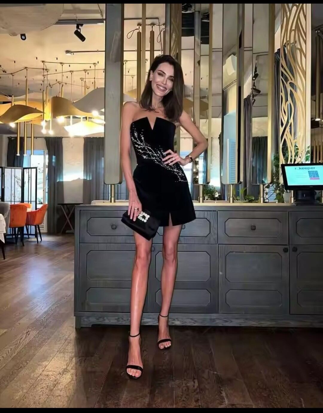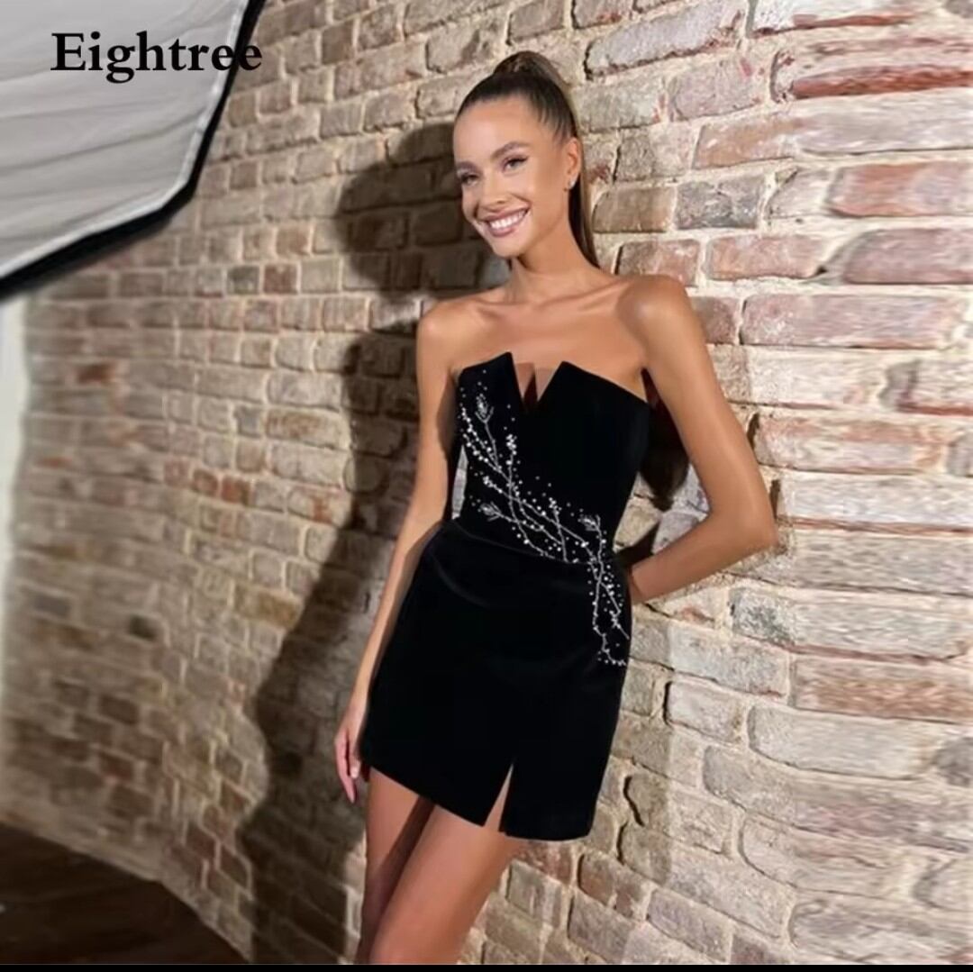 《オーダーメイド》黒のベルベットのショートウエディングドレス、ストラップレス、パールビーズ、セクシーなカクテルドレス、クラブナイト、カスタマイズ、アリアナ