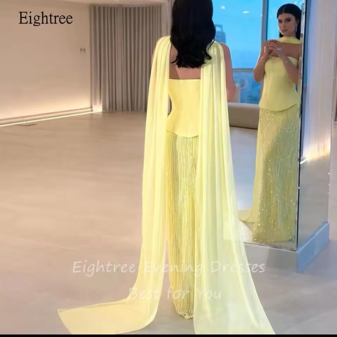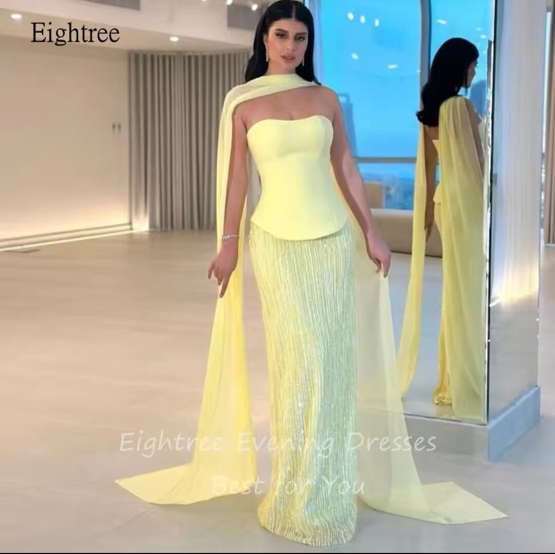 《オーダーメイド》光沢のある黄色のストラップレスマーメイドウエディングドレス背中の開いたフォーマルパーティードレスサウジ床の長さのイブニングドレスカスタマイズマーメイド