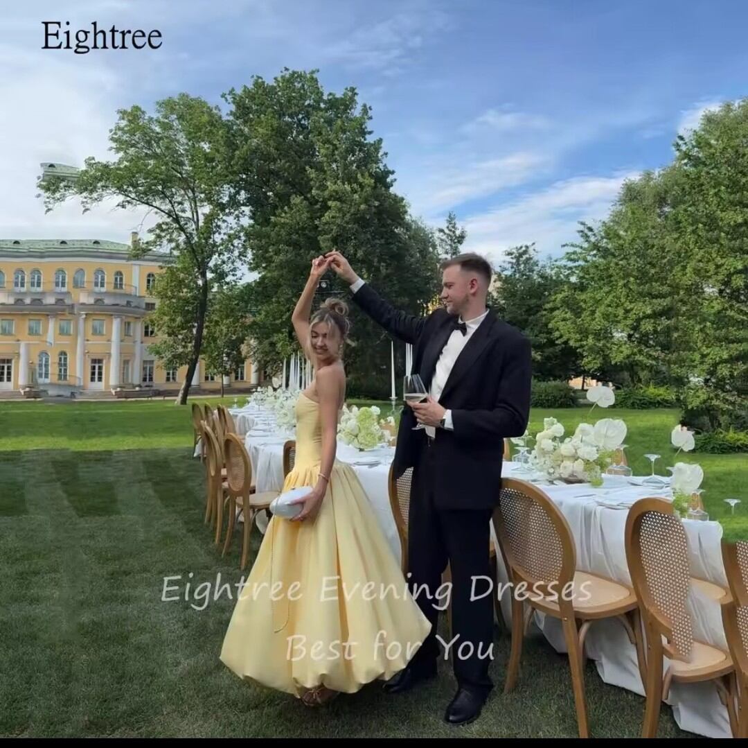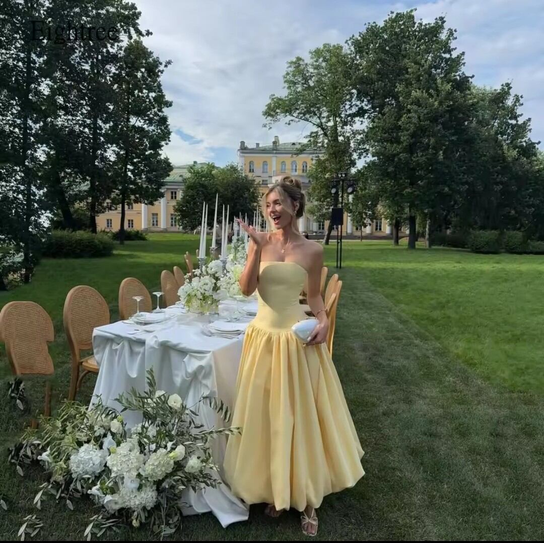 《オーダーメイド》シンプルなイエローストラップレスAラインフォーマルウエディングドレス背中の開いたイブニングドレスフロアレングスパーティードレスカスタマイズ姫