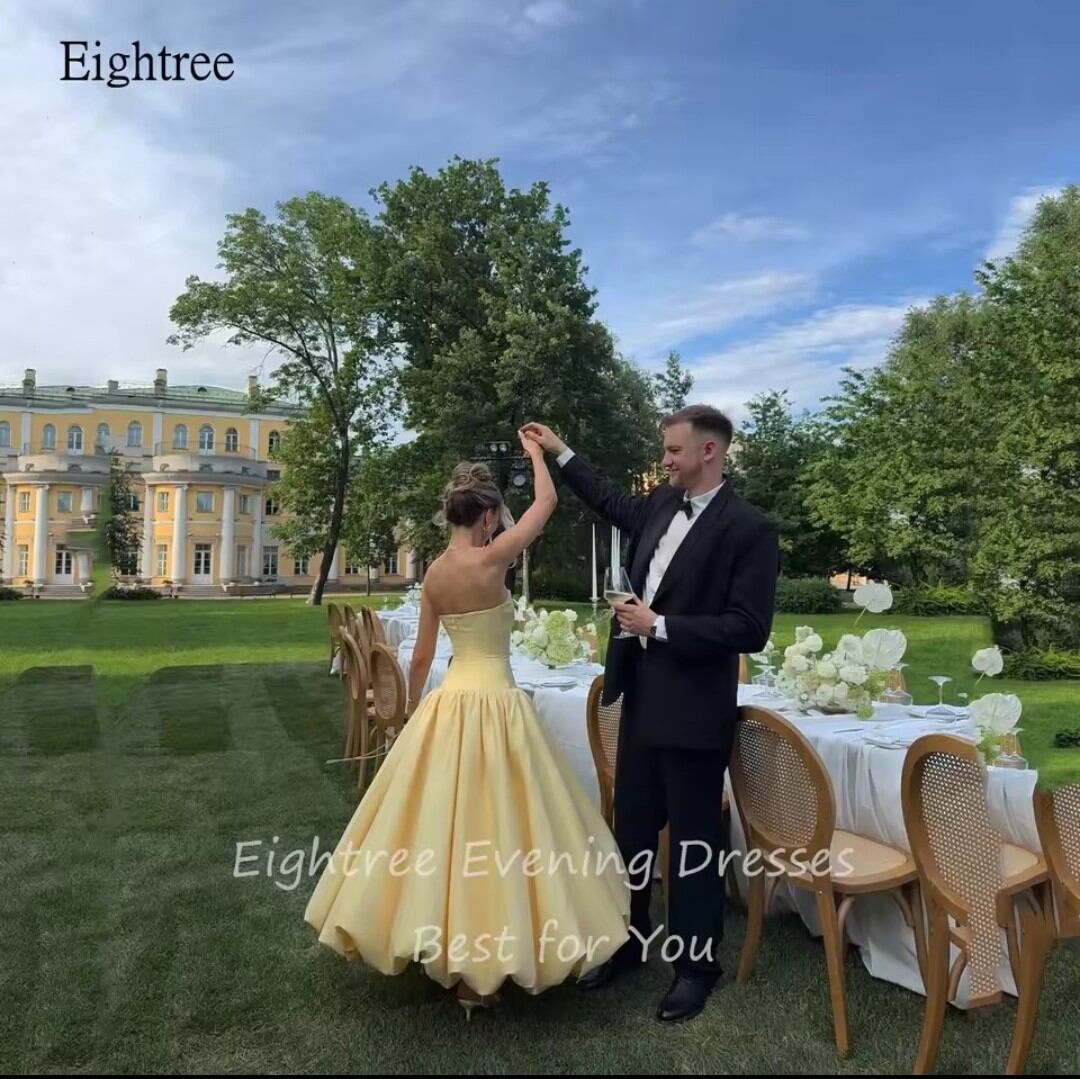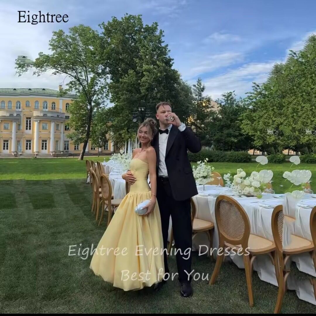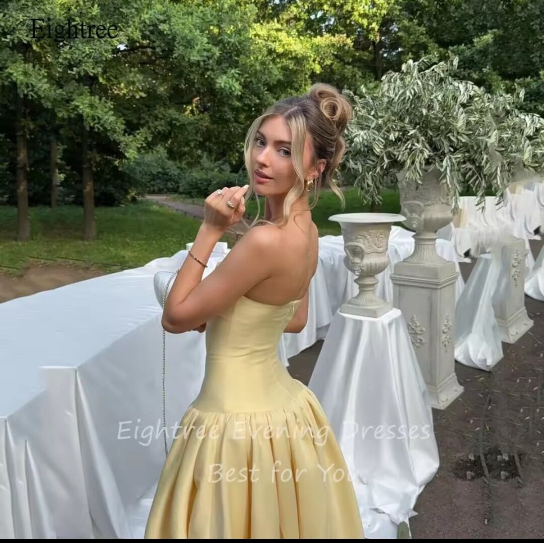 《オーダーメイド》シンプルなイエローストラップレスAラインフォーマルウエディングドレス背中の開いたイブニングドレスフロアレングスパーティードレスカスタマイズ